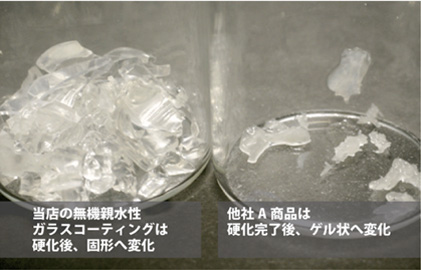 カルロコーティング プレミアムでは疎水性溶液よりさらに水に溶け込む