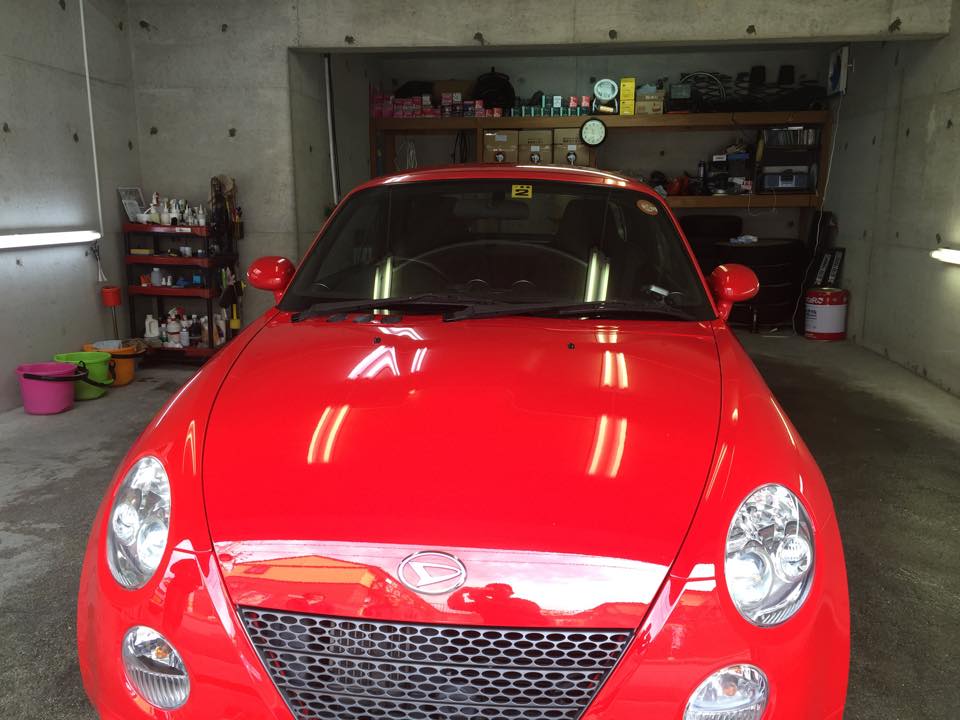 コペンにガラスコーティング(スタンダード)&水垢除去0件約1分こんにちは、カルロの永松です 2月最終日、今日も頑張って磨いてます 今日は新規のお客様、コペンにカルロコーティングスタンダード&水垢除去です。 赤は色あせしやすいのですが、軽く磨いてコーティングすればこの通り! エンブレムまわりのワックスの拭き残し等も綺麗に落とします☺️ これからもよろしくお願いします。