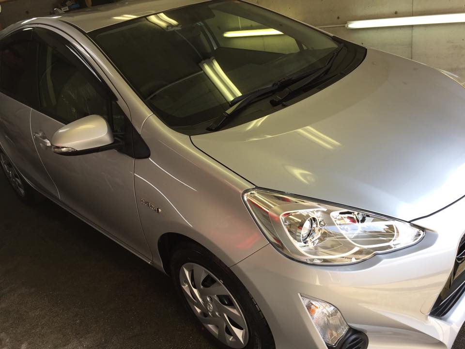 アクアにガラスコーティング(スタンダード)約1分こんにちは、カルロの永松です 3月は新車の入庫が多いですね。 今日もアクアの新車にカルロコーティングスタンダードです。 新車のうちからやっておくと後が楽です。 これからなが〜いお付き合い、よろしくお願いします。