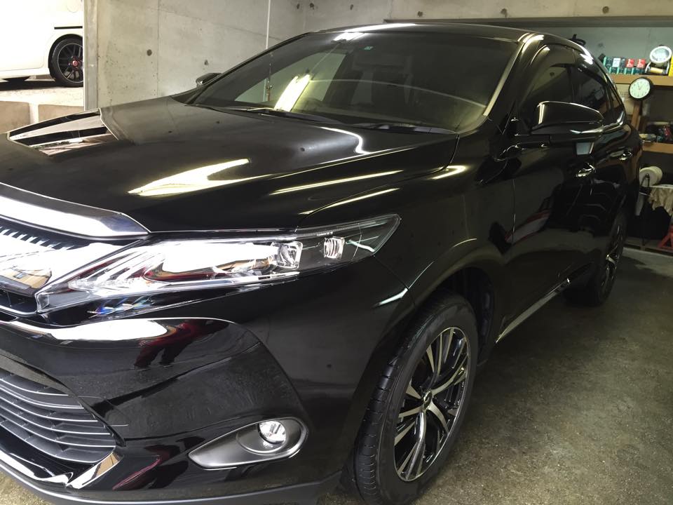 ハリアーにガラスコーティング(スタンダード)約1分こんにちは、カルロの永松です 昨日の雪、寒かったですね。 そんな中でもお客様のため、頑張って施工してます 今日はハリアーにカルロコーティングスタンダードです。 ブラックのハリアー、ピカピカだと高級感がありますね。 綺麗を維持していきましょう!