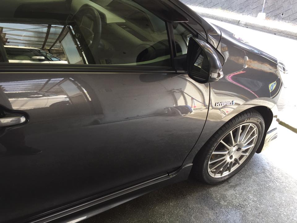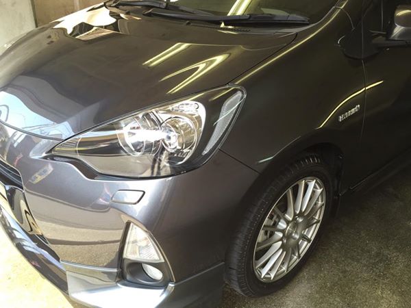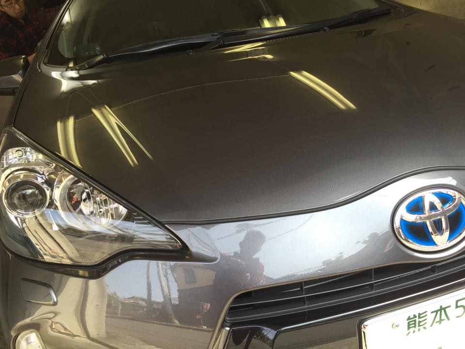 アクアにガラスコーティング(プレミアム)約1分こんにちは、カルロの永松です 昨晩はサッカー三昧でしたね。 A代表もオリンピック予選も勝って良かったです 今日は熊本からの常連様、アクアにカルロコーティングプレミアムです。 今、阿蘇山の火山灰で洗車が大変そうですが、常連様のお車なので、やっぱり綺麗です。 いつもお土産までいただいて、ありがとうございます。 これからもよろしくお願いします。
