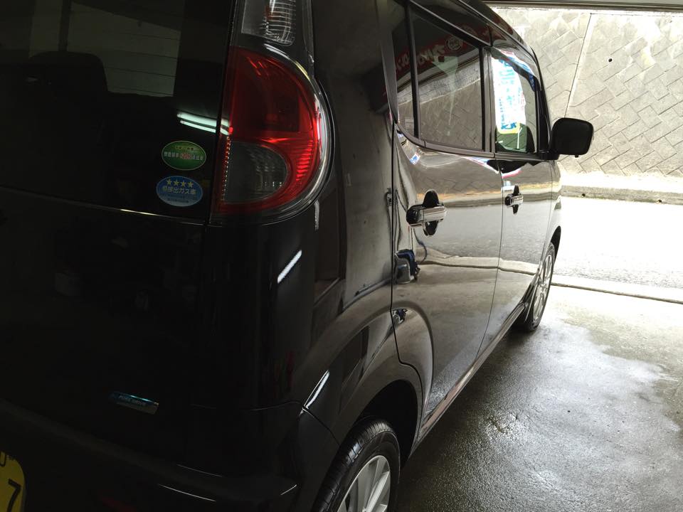 モコにガラスコーティング(スタンダード)約1分こんにちは、カルロの永松です またまた寒くなってしまいました。 雨で桜も散っていますね。 花見したかったです。 今日は新規のお客様、モコにカルロコーティングスタンダードです。 展示車を購入されたと言うことです。 展示車と言うのは、毎朝タオルで拭かれているので、満遍なく傷が無数に入っています。 今回は磨きも付けていただいて、ピカピカに仕上がりました。 これからもよろしくお願いします