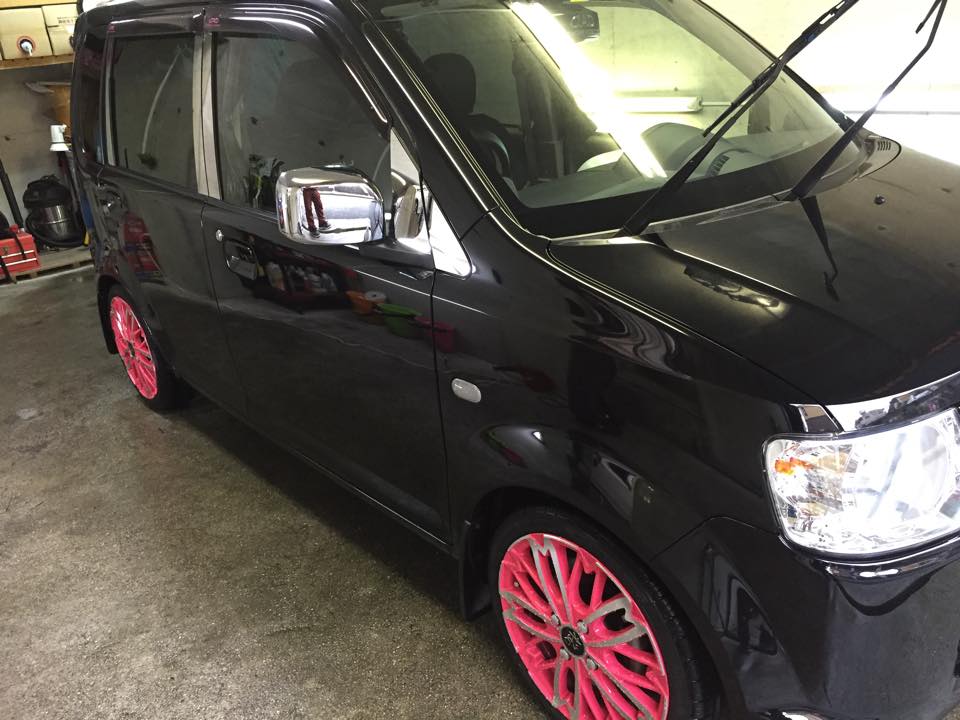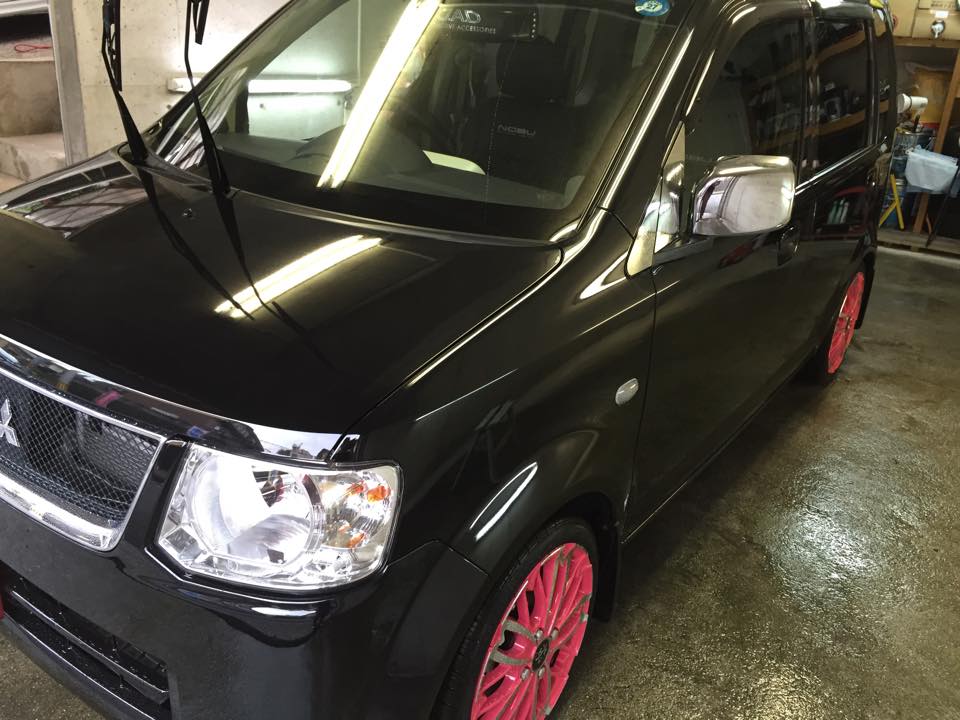 ekワゴンにガラスコーティング(スタンダード)&ガラス超撥水&ホイールコーティング約1分こんにちは、カルロの永松です 今日は常連様のekワゴンに カルロコーティングスタンダード&フロントガラス撥水&ホイールコーティングです。 差し入れまでいただきました。 ありがとうございます。 色々といじっています。 シートカバーを見て、うちもオリジナルを作ってみようと思いました。 これからもよろしくお願いします。