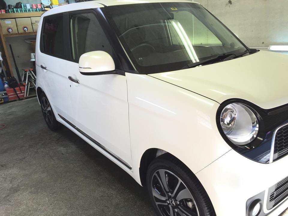 N ONEにガラスコーティング(スタンダード)約1分こんにちは、カルロの永松です 4月も後半になって来ましたね。 ゴールデンウィークも目の前です。 皆さん計画はたてていますか? ドライブする方は綺麗な愛車で気持ち良くドライブしましょう! 今日は常連様のN ONEにカルロコーティングスタンダードです。 定期施工していただいているので、鉄粉やピッチも少ないうちに落せます。 だからいつも綺麗です。 これからもよろしくお願いします。