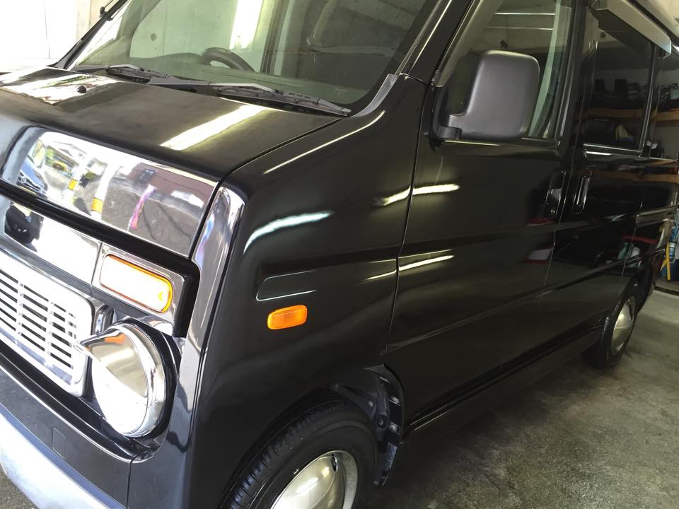 バモスにガラスコーティング(スタンダード)約1分こんにちは、カルロの永松です 今日は常連様のバモスにカルロコーティングスタンダードです いつも、忙しい中定期施工していただいています。 だから、気になる小傷等はその都度消したりします。 これからもよろしくお願いします。