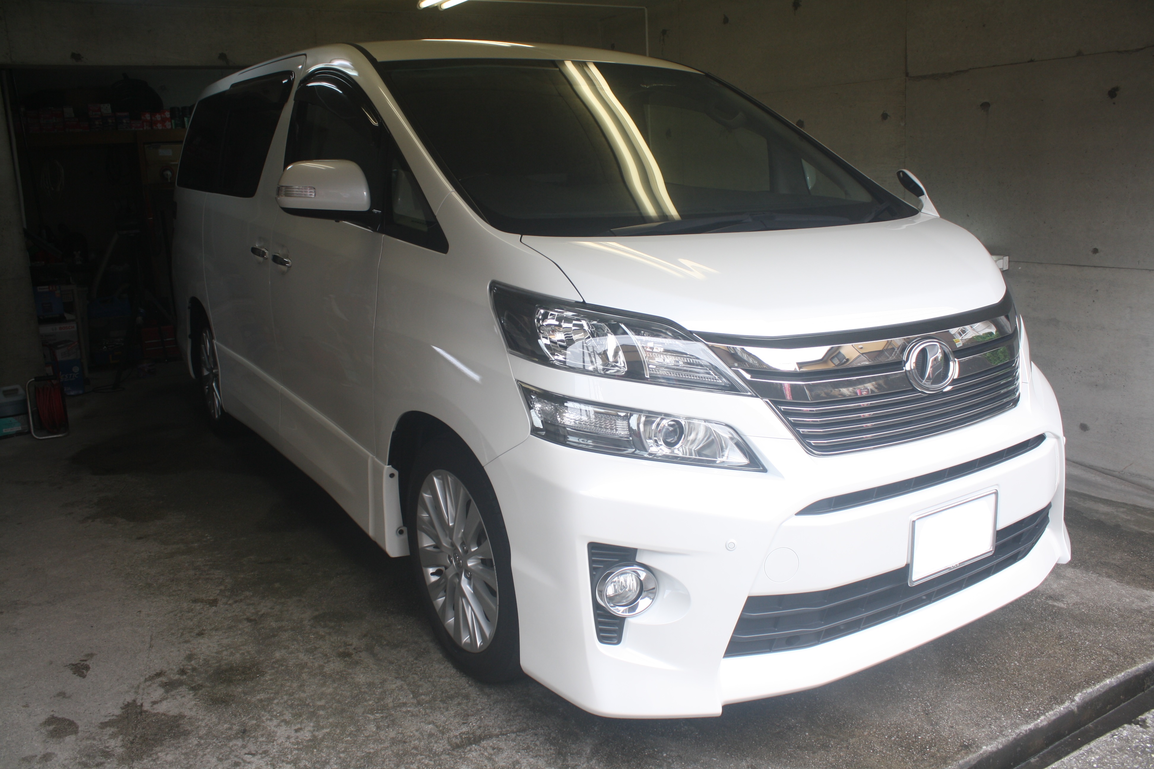 ヴェルファイアにガラスコーティングプレミアム約1分こんにちは、大分のカーコーティング カルロ 永松です。 お盆休みが終わり、今日から通常営業です。 よろしくお願いします。 今日は常連様のヴェルファイアにカルロコーティング『プレミアム』&ガラス全面磨きです。 洗車が行き届いているので、来た時から綺麗でした。 でも、ガラスにはうろこがかなり付いていました。 全面磨いて撥水コーティング。 ガラスが綺麗だと、全体の輝きが増したように見えますね。 これからも洗車を頑張って、この状態を維持してくださいね!!
