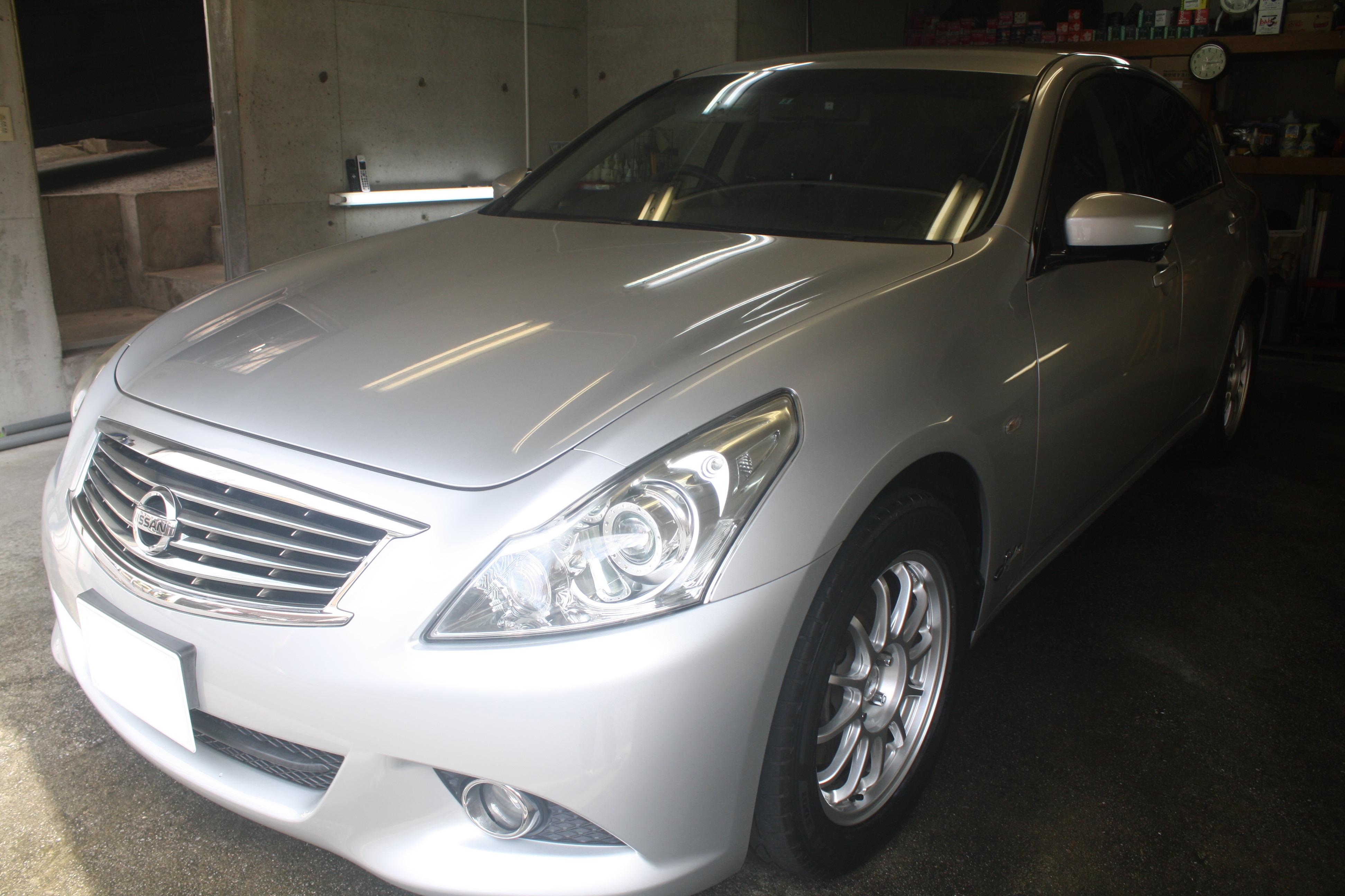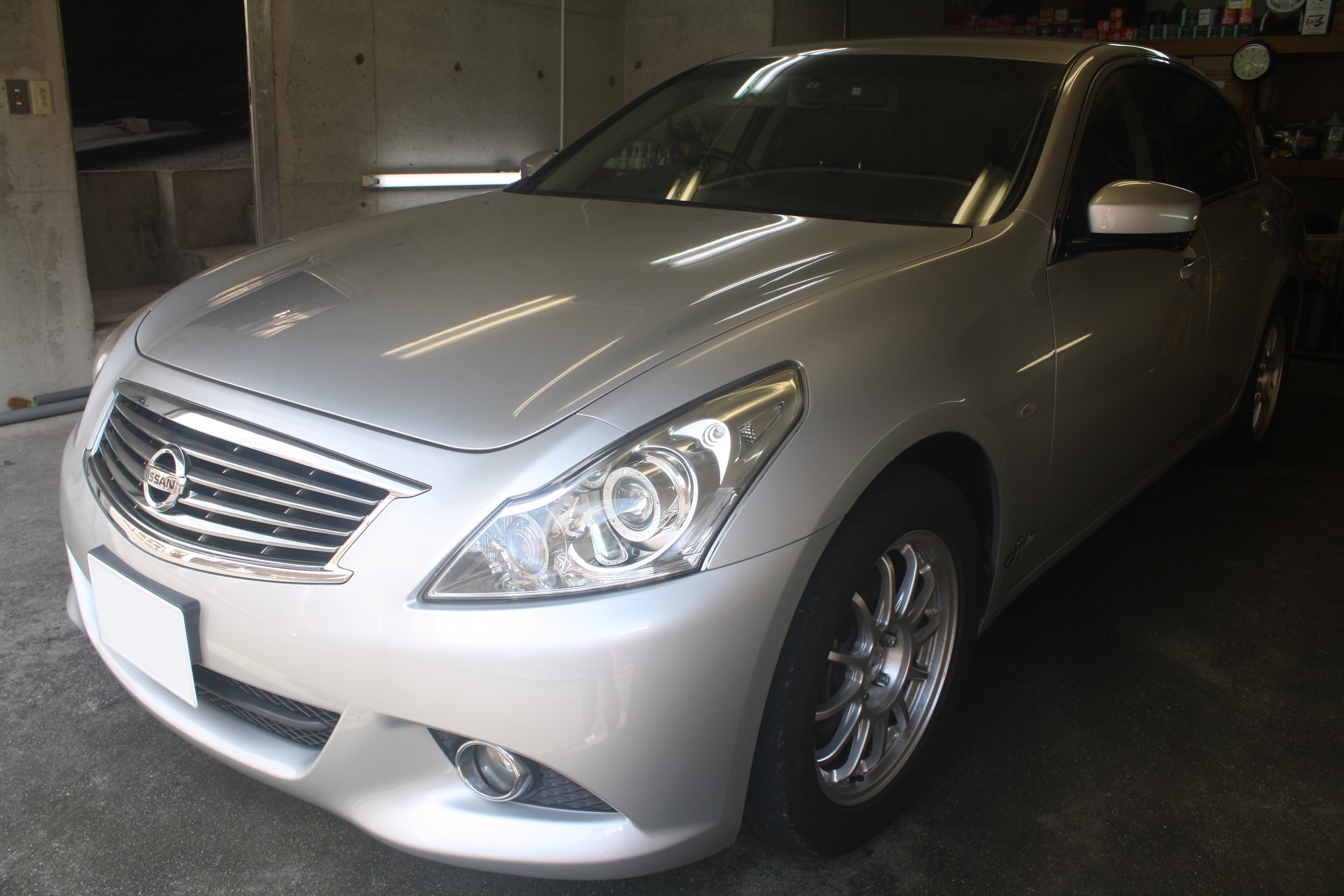 今日は常連様のスカイラインにカルロコーティングスタンダードです。