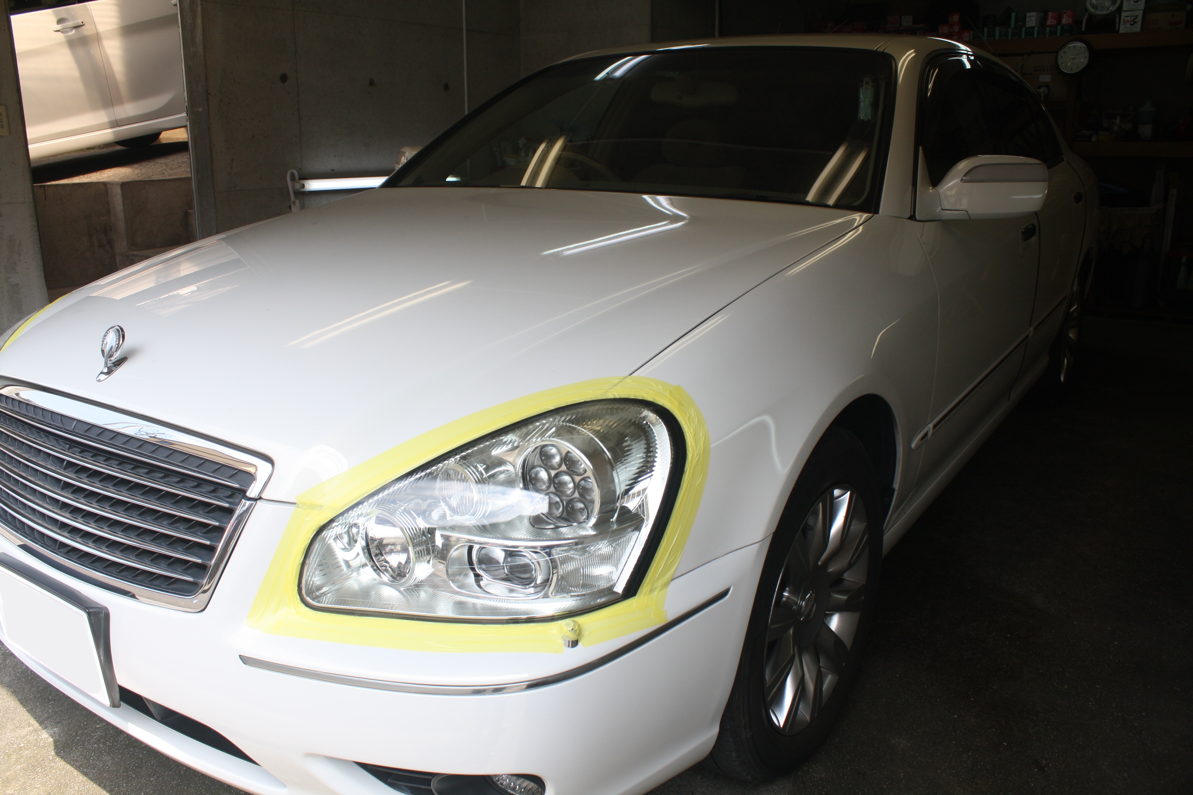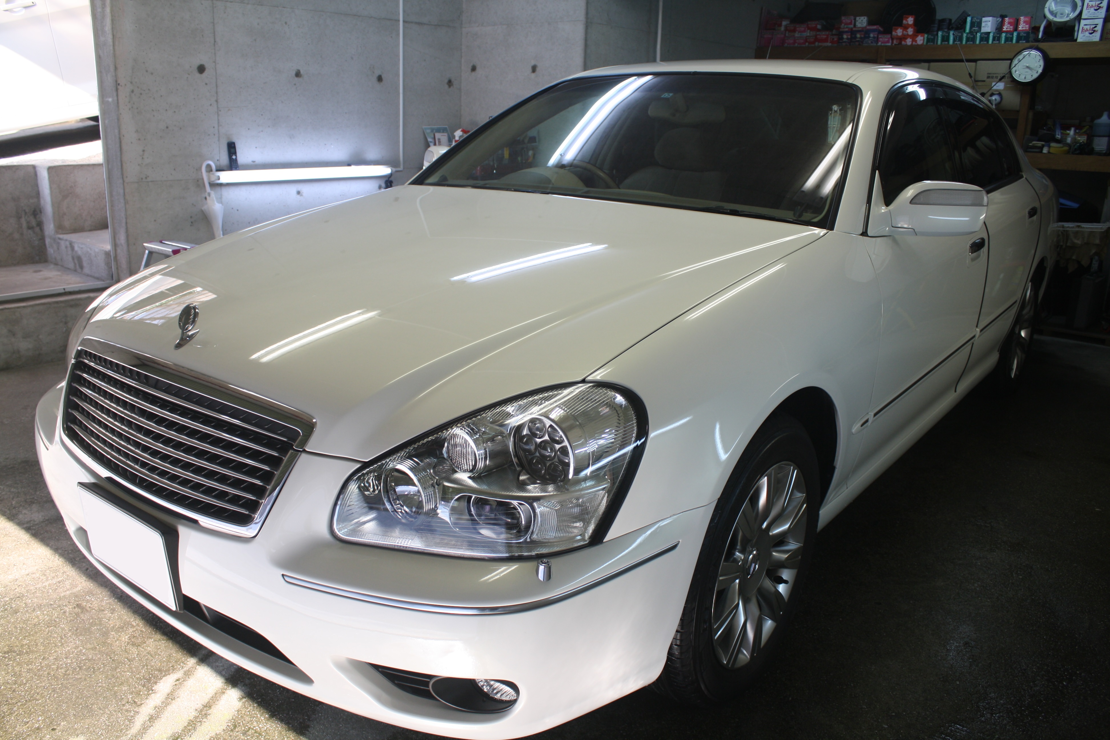 シーマにガラスコーティングスタンダード&ヘッドライト再生約2分こんにちは、大分のカーコーティング カルロ 永松です。 桜も昨日からの雨でだいぶ散ってしまいましたね。 花見をし損ねました(^^;) 今日は常連様の息子さんのシーマに、カルロコーティングスタンダード&ヘッドライト再生です。 Before Before ヘッドライトの表面のクリアが上の部分から剥がれています。 それで白っぽくなっています。 磨き上げて新品の状態に近づけていきます。 そして、 After 透明なレンズになり、艶々ピカピカです。 ボディーもコーティングして After これで気持ち良く乗っていただけます。