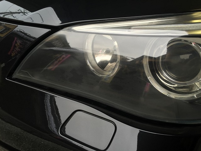 ヘッドライトは磨きで黄ばみくもりを取ります。