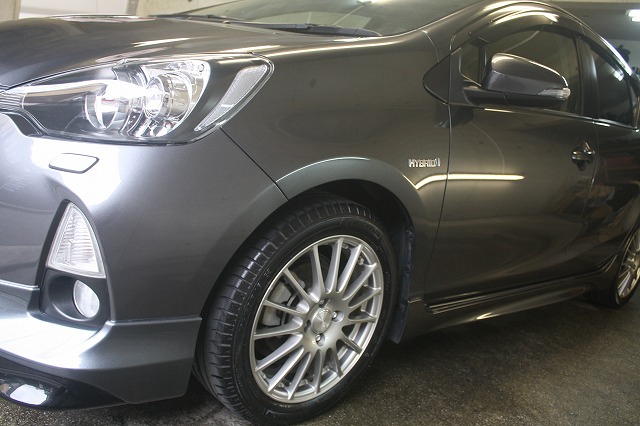 アクアにガラスコーティングプレミアム約2分こんにちは、大分のカーコーティング カルロ 永松です。 雨が続いていますね。 この雨が上がるとだんだん暖かくなっていくんでしょうね。 雨の中も頑張って施工しています。 今日は熊本からの常連様、アクアにカルロコーティング『プレミアム』です。 Before 熊本は震災で道も荒れているようです。 汚れもひどく、車にとっても厳しい状況ですね。 しかしコーティング常連様のお車だから大丈夫です。 Before After こんなに綺麗になります。 さらに磨き上げてコーティング。 これでまた気持ちよく乗れますね。 まだまだ大変ですが、頑張ってください!