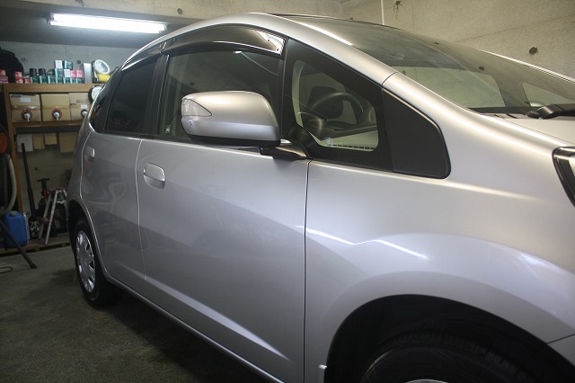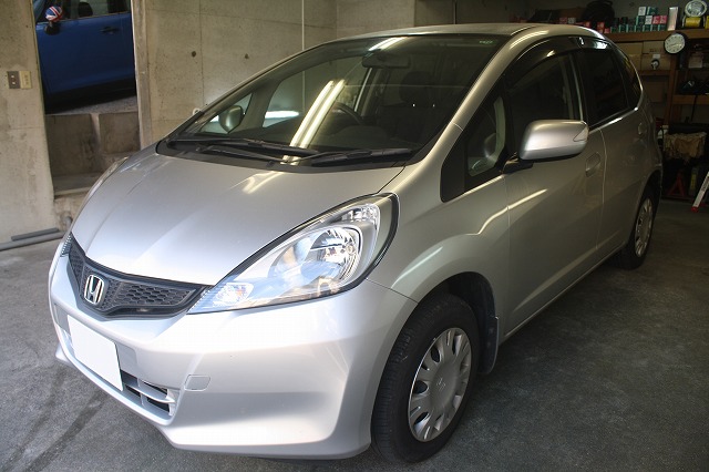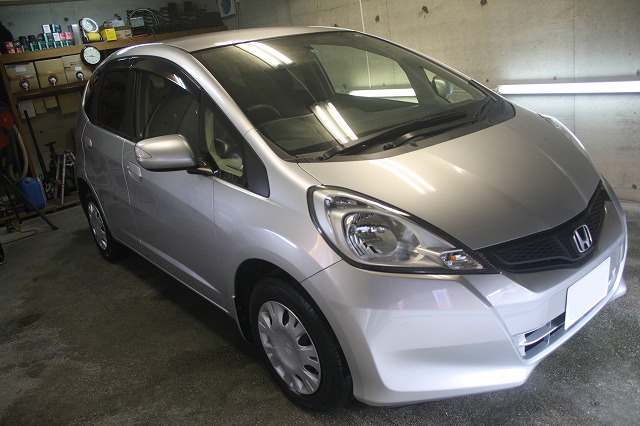 今日は新規のお客様、フィットにカルロコーティングプレミアム&ガラス全面撥水です。